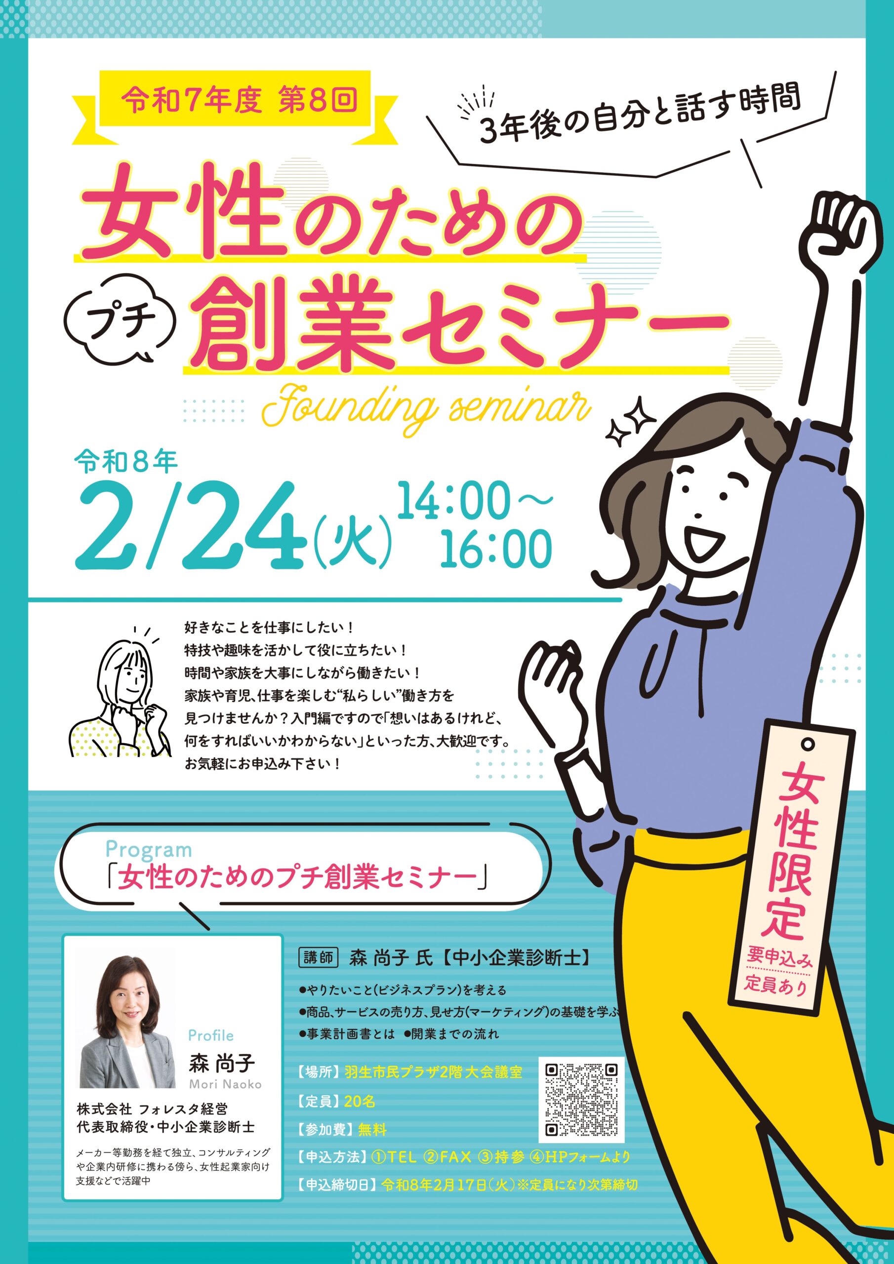 【2月24日(火)】女性のためのプチ創業セミナーを開催します!